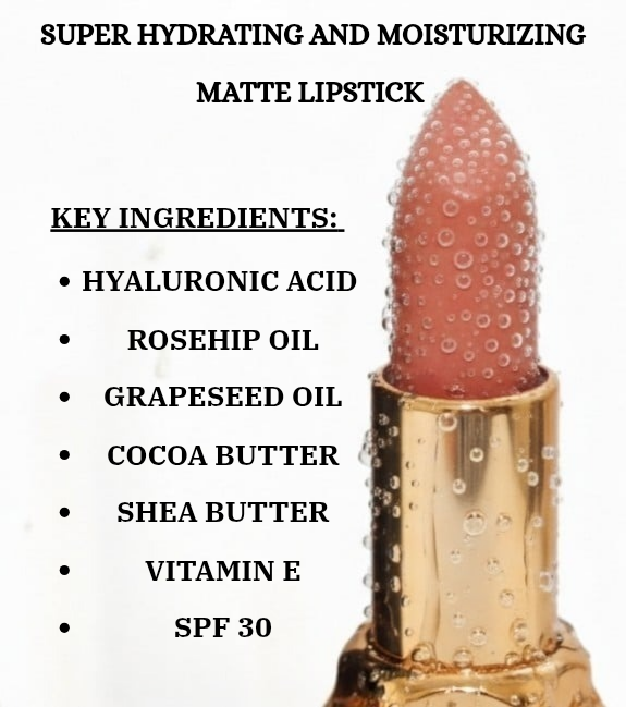 Super Hydrating & Ultra-Nourishing: Infused with Hyaluronic Acid, Cocoa Butter, and Shea Butter, this lipstick delivers deep hydration, ensuring your lips stay plush, smooth, and never dry.